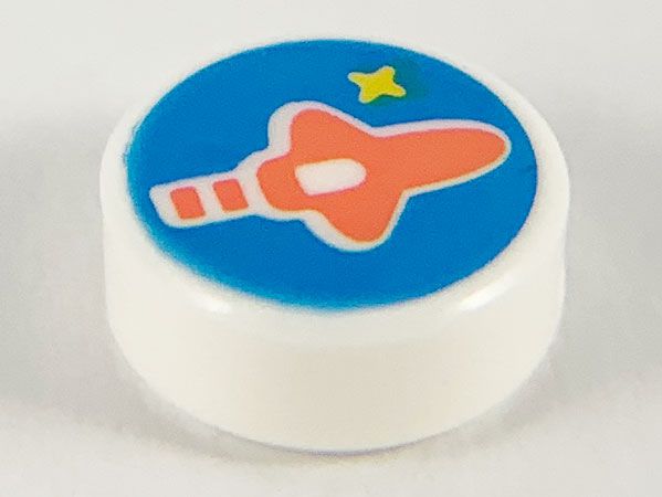 Placa Lisa Redonda 1x1 branca com desenho de nave espacial coral - Tile