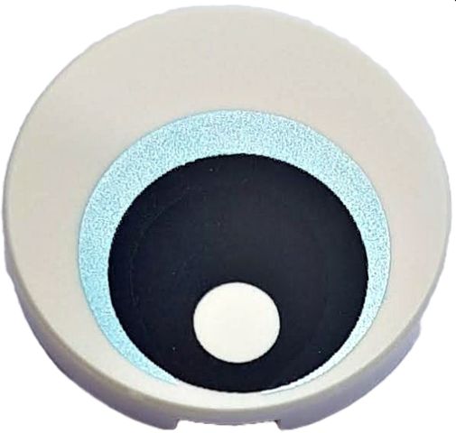Placa Lisa redonda 2x2 com desenho de olho com íris azul claro metálico e desenho de pupila preta