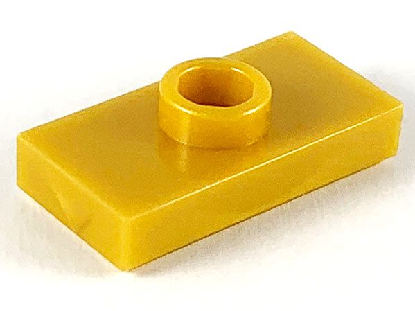 Placa Modificada 1x2 com botão Perolada (Pearl Gold)