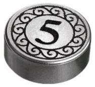 Placa Redonda Lisa 1x1 com desenho de moeda e número 5 Flat Silver